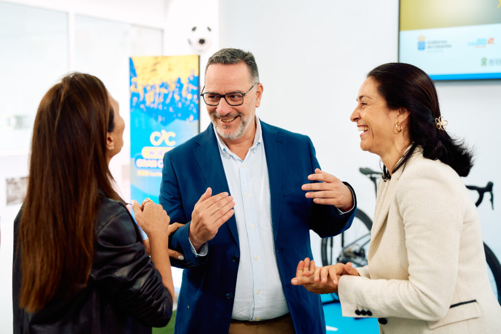 Seguidamente intervino la concejala de Deportes del Ayuntamiento de Las Palmas de Gran Canaria, Carla Campoamor, destacando el orgullo que supone para la capital acoger la salida de la prueba y subrayando la importancia de seguir impulsando el ciclismo y los eventos deportivos como herramientas de promoción del territorio.